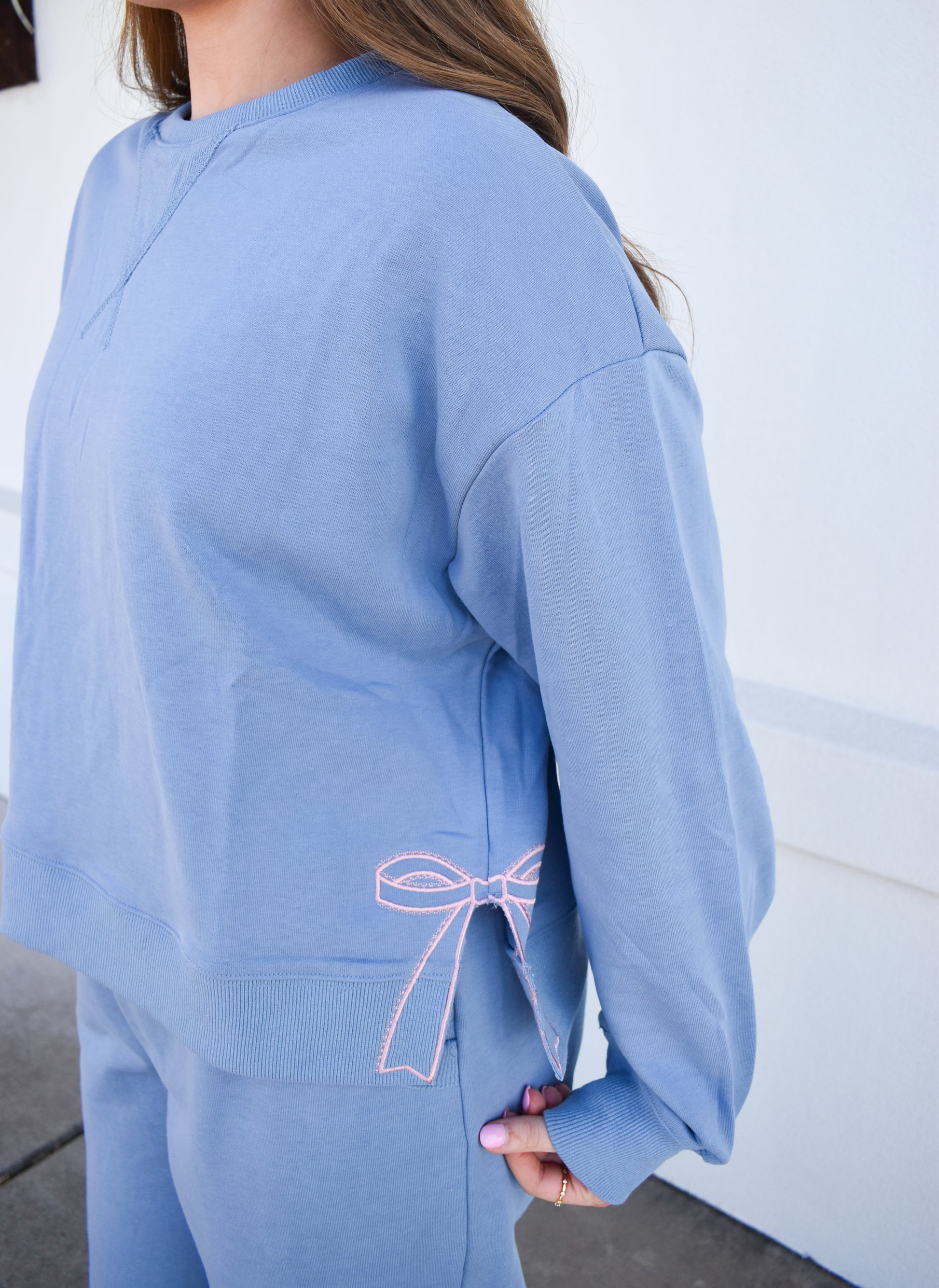 Crew Neck W/ Bow Embroidery Detail