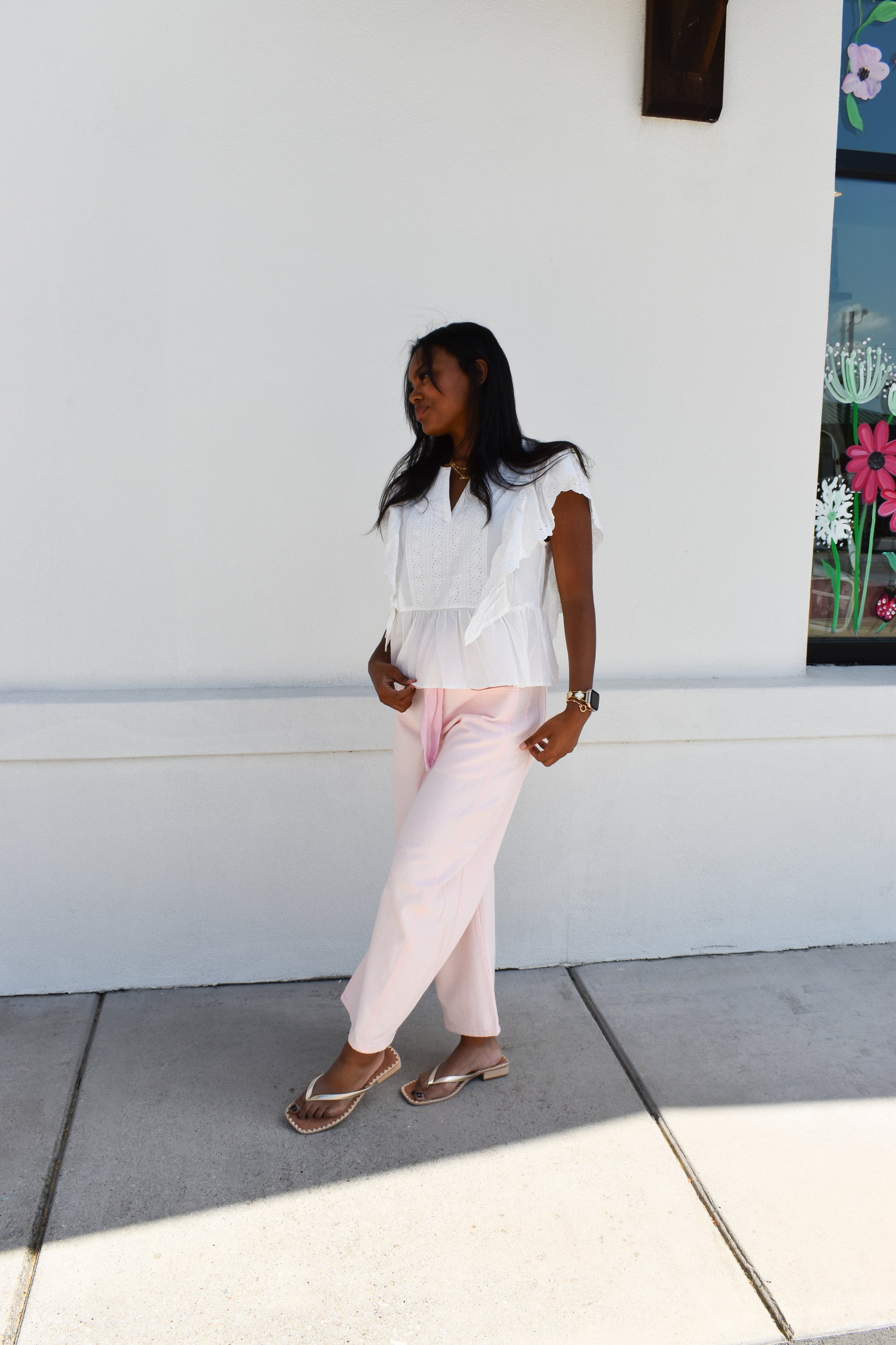 Delicately Embroidered Eyelet Ruffled Cotton Poplin Blouse