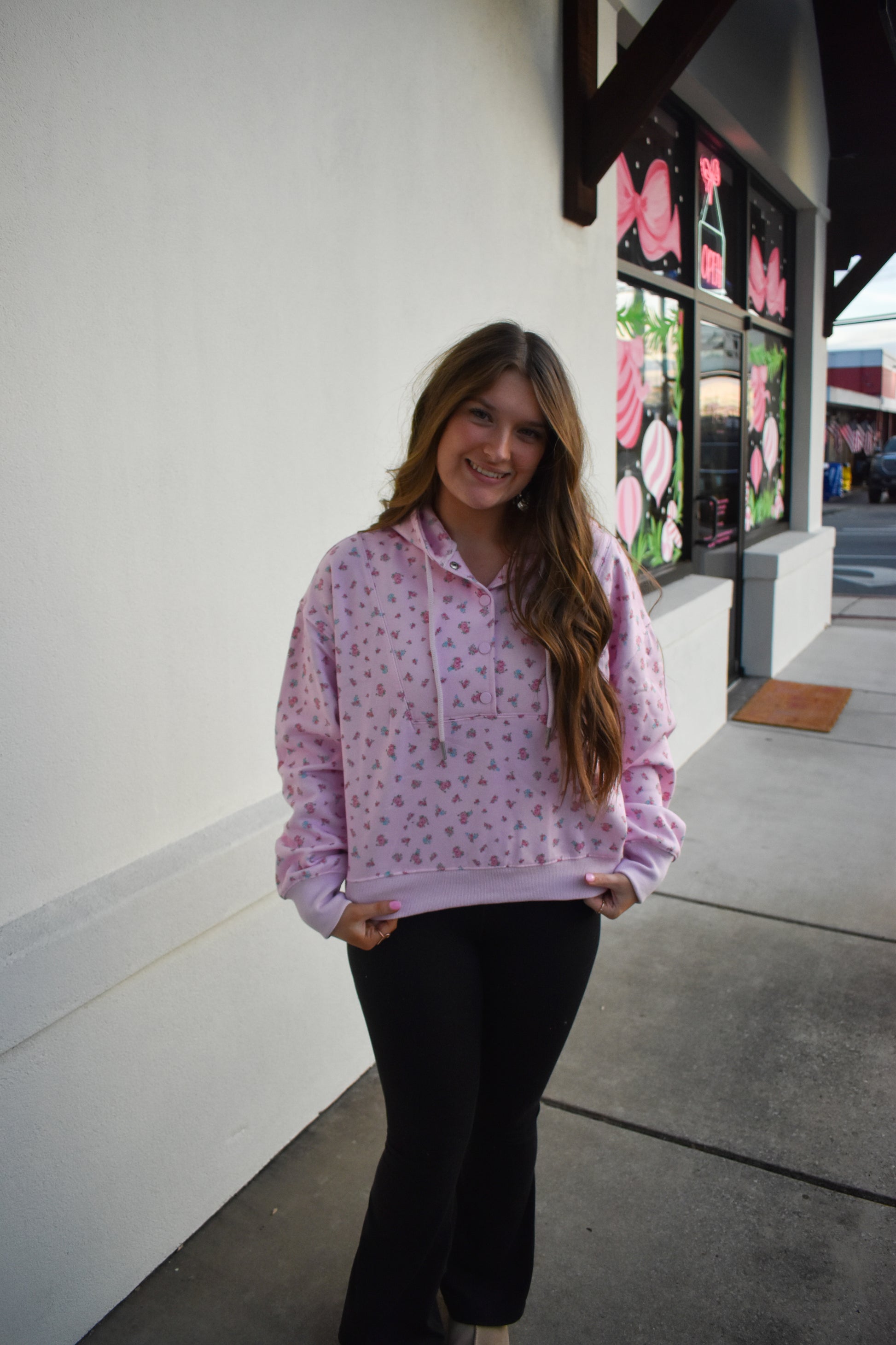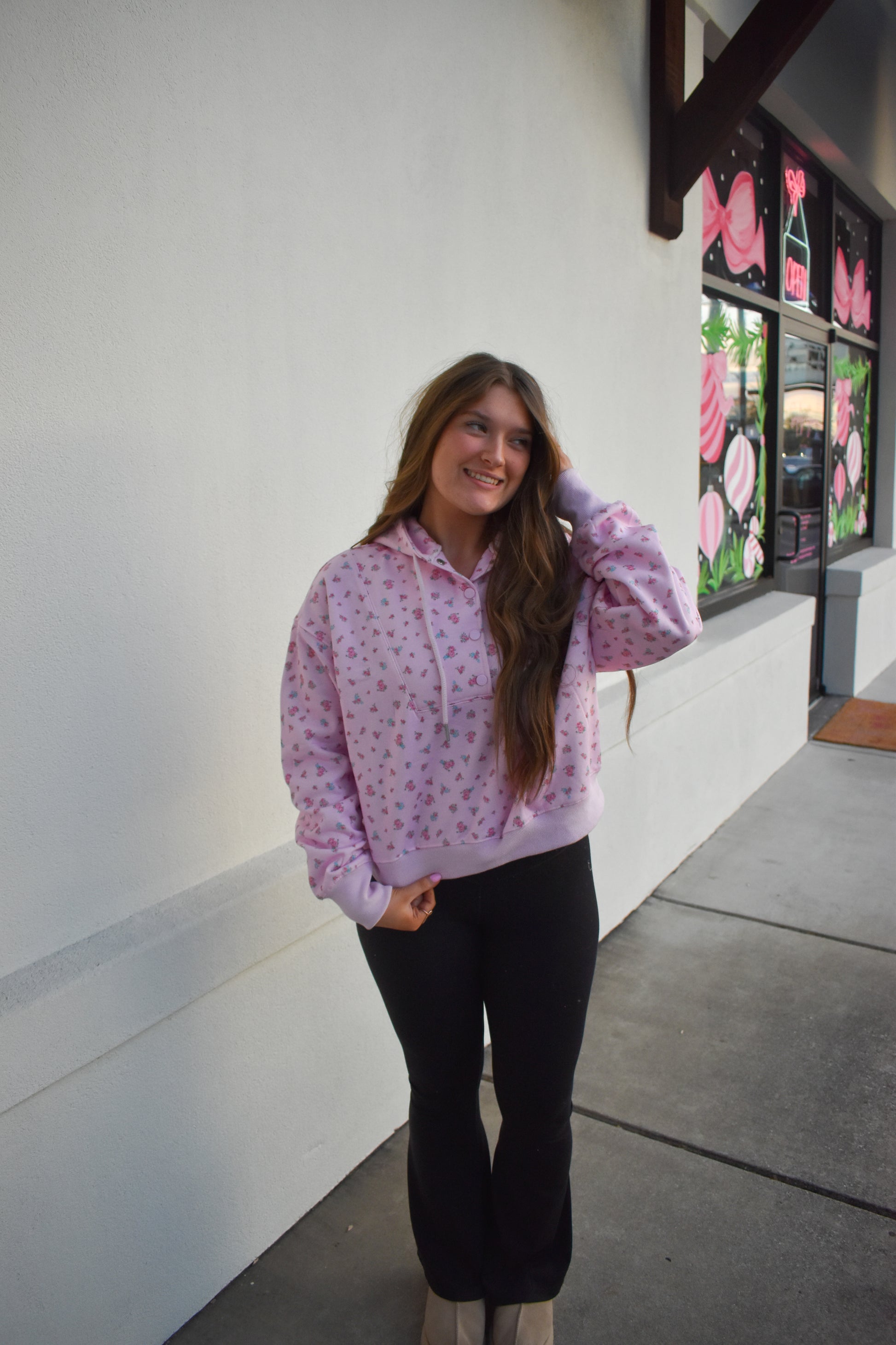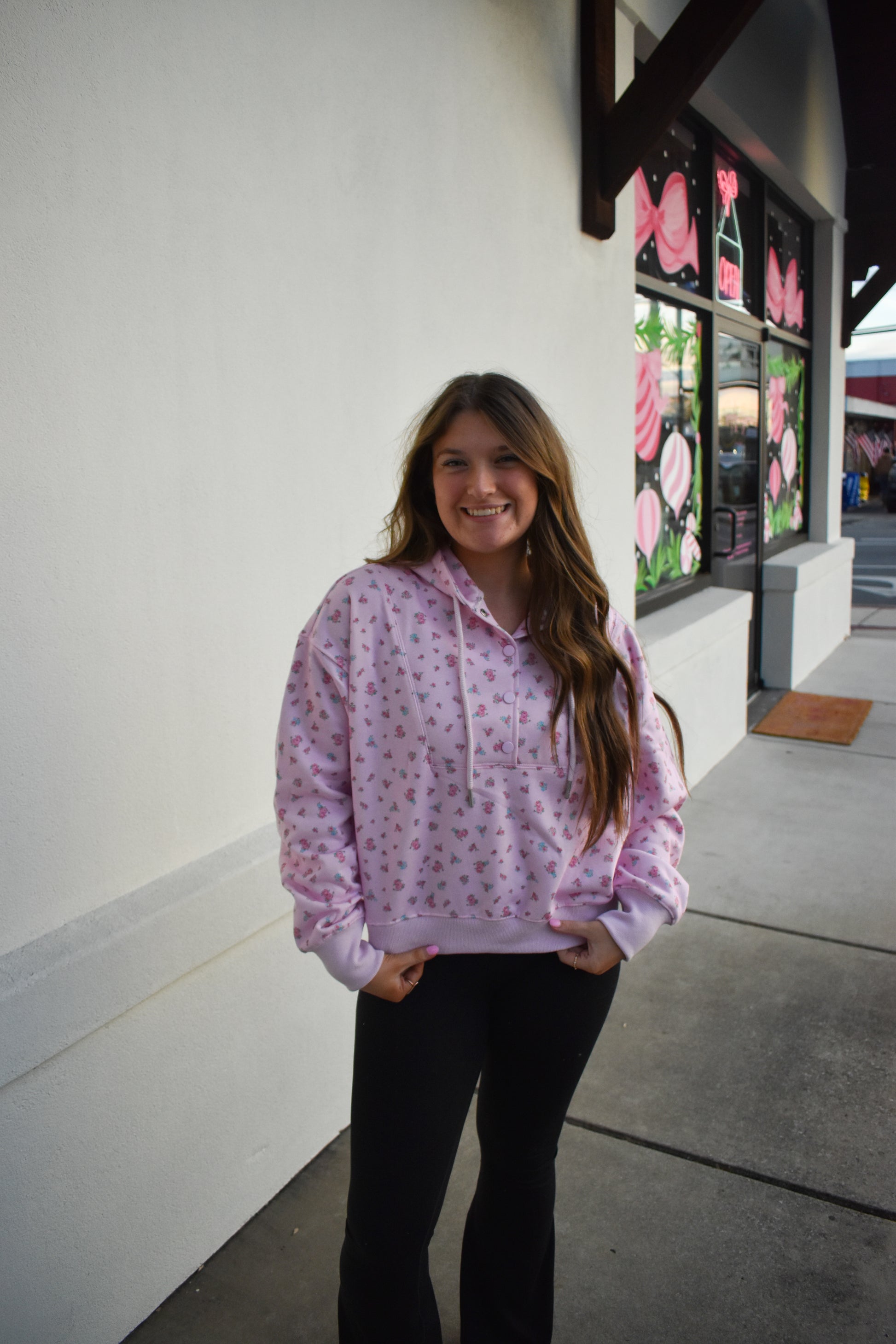 Floral Print Detail Hoodie