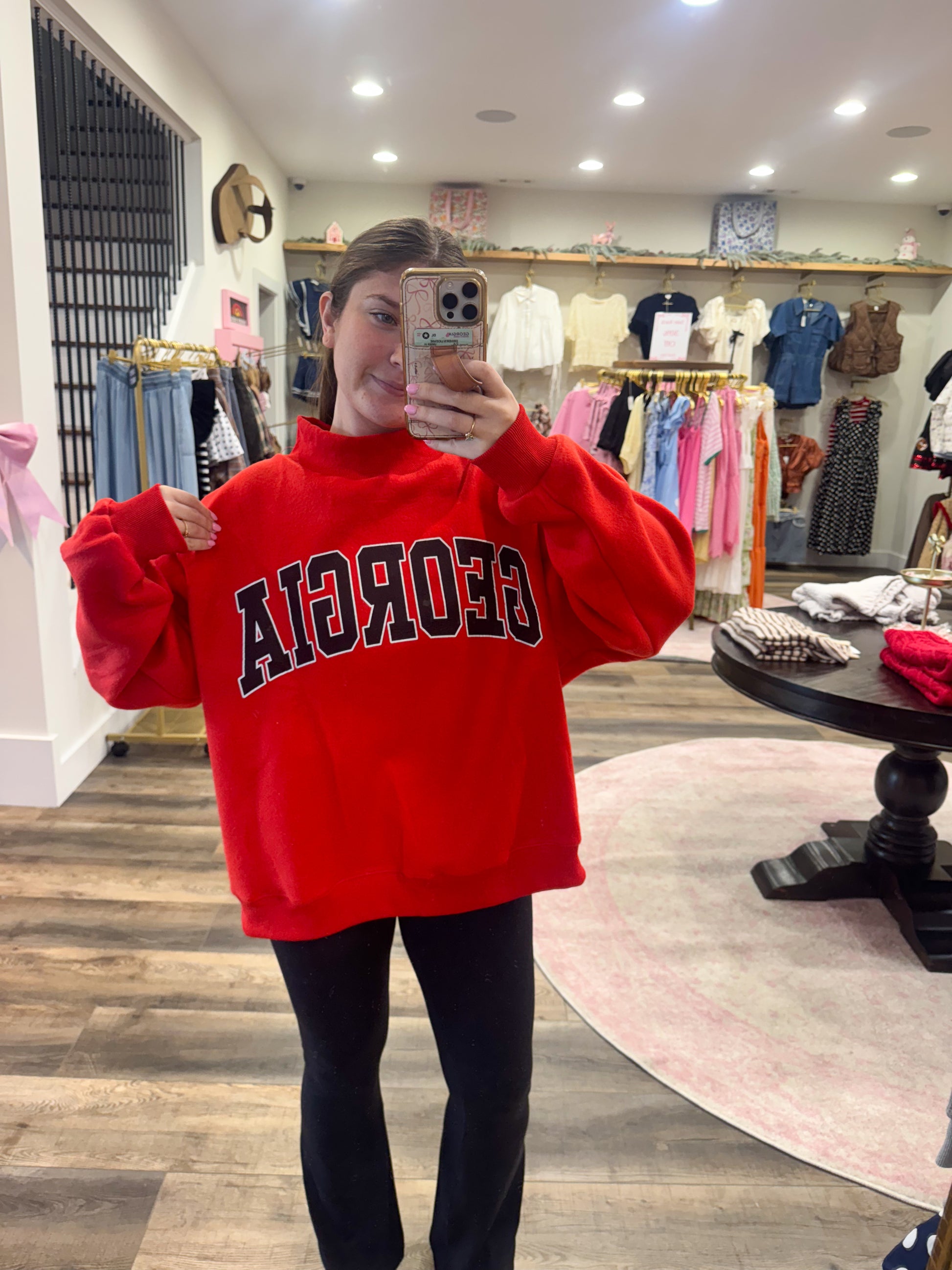 Print Reversible Mockneck Sweatshirt - Mock-neck - Drop shoulder, long sleeves - Softest cozy fleece - Oversized fit - Rib banded hemline and cuffs - The reversible design lets you switch up your style.