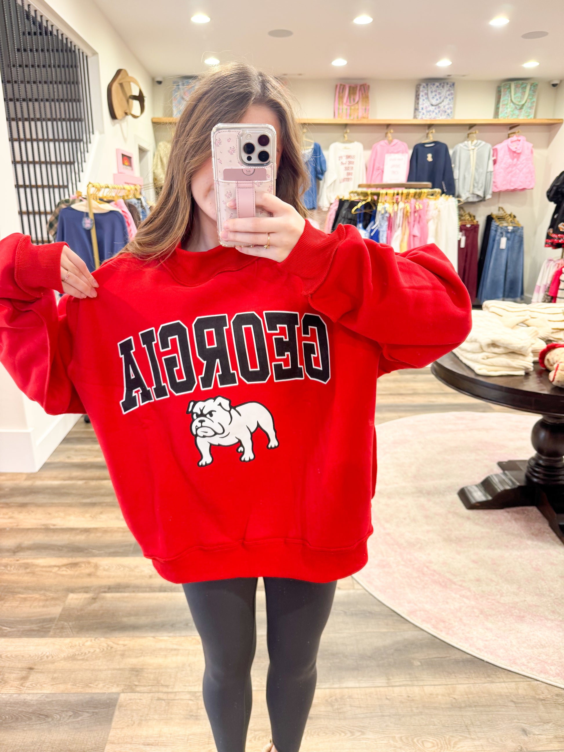 Print Reversible Mockneck Sweatshirt - Mock-neck - Drop shoulder, long sleeves - Softest cozy fleece - Oversized fit - Rib banded hemline and cuffs - The reversible design lets you switch up your style.
