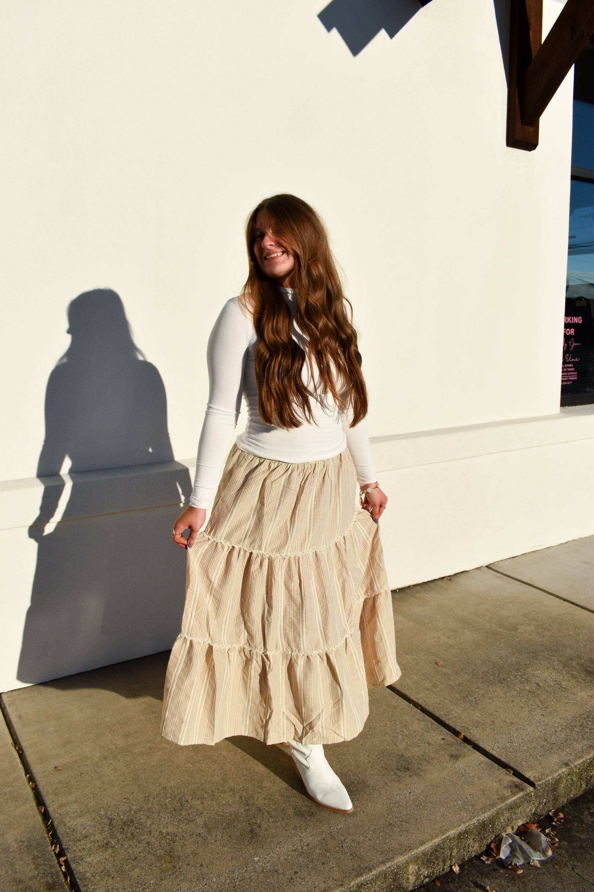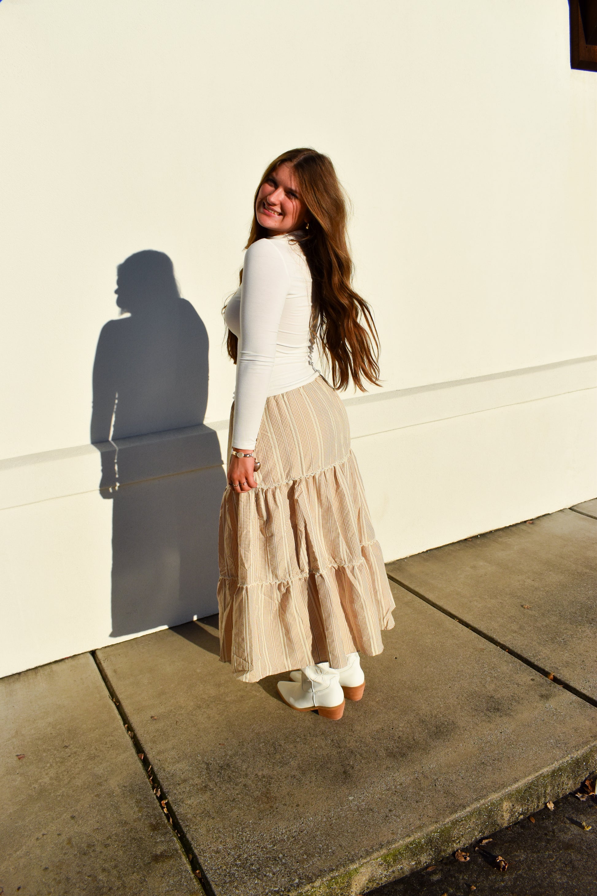 Lace Trim Gingham Maxi Skirt