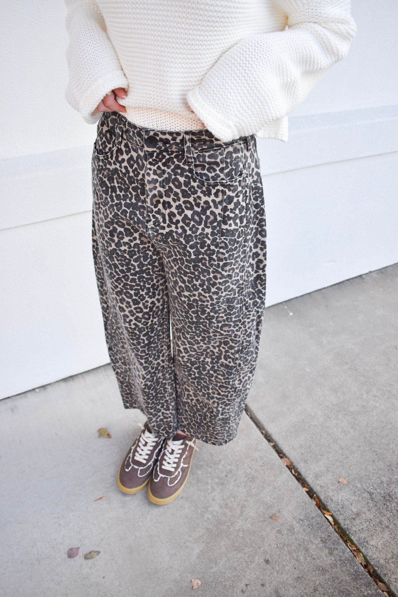 Leopard Print Barrel Pants