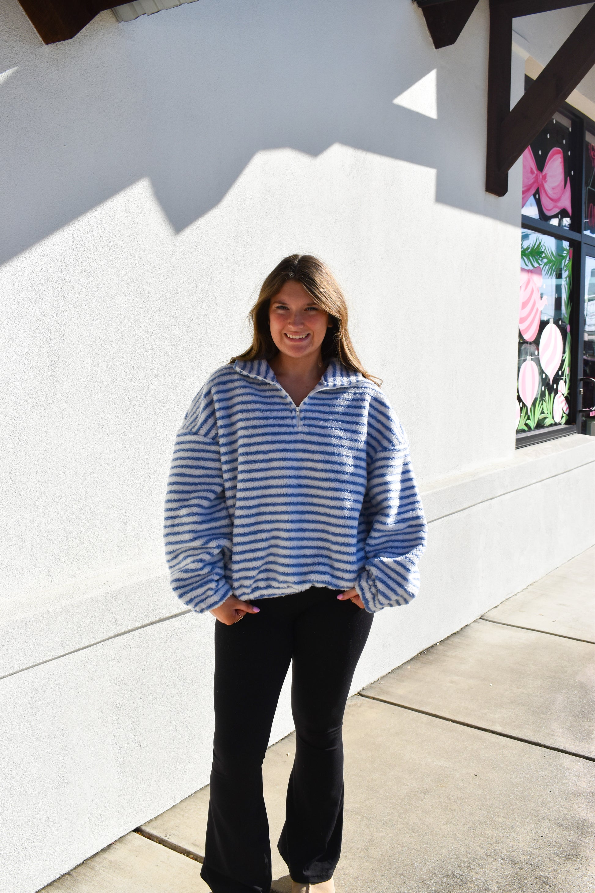 Liz Stripe Quarter Zip Fleece