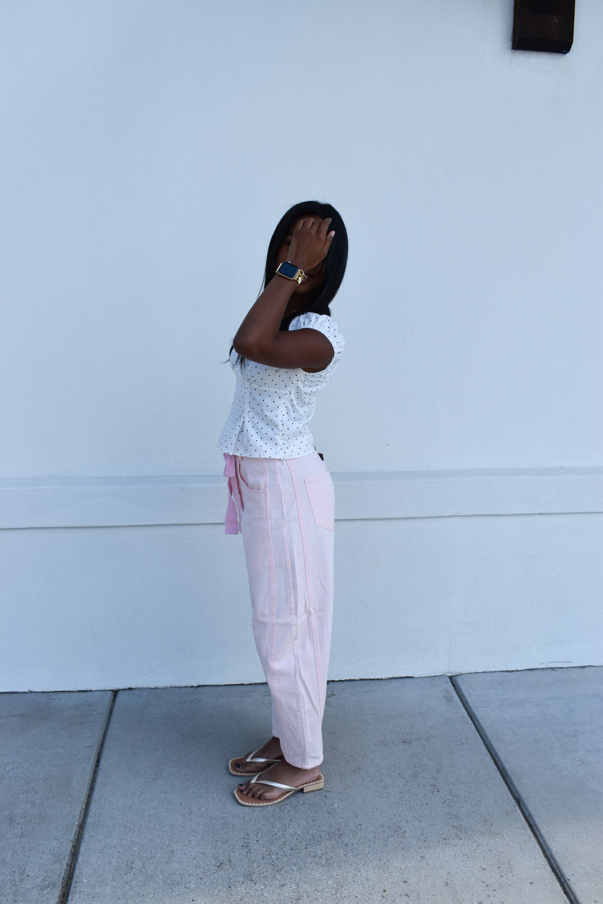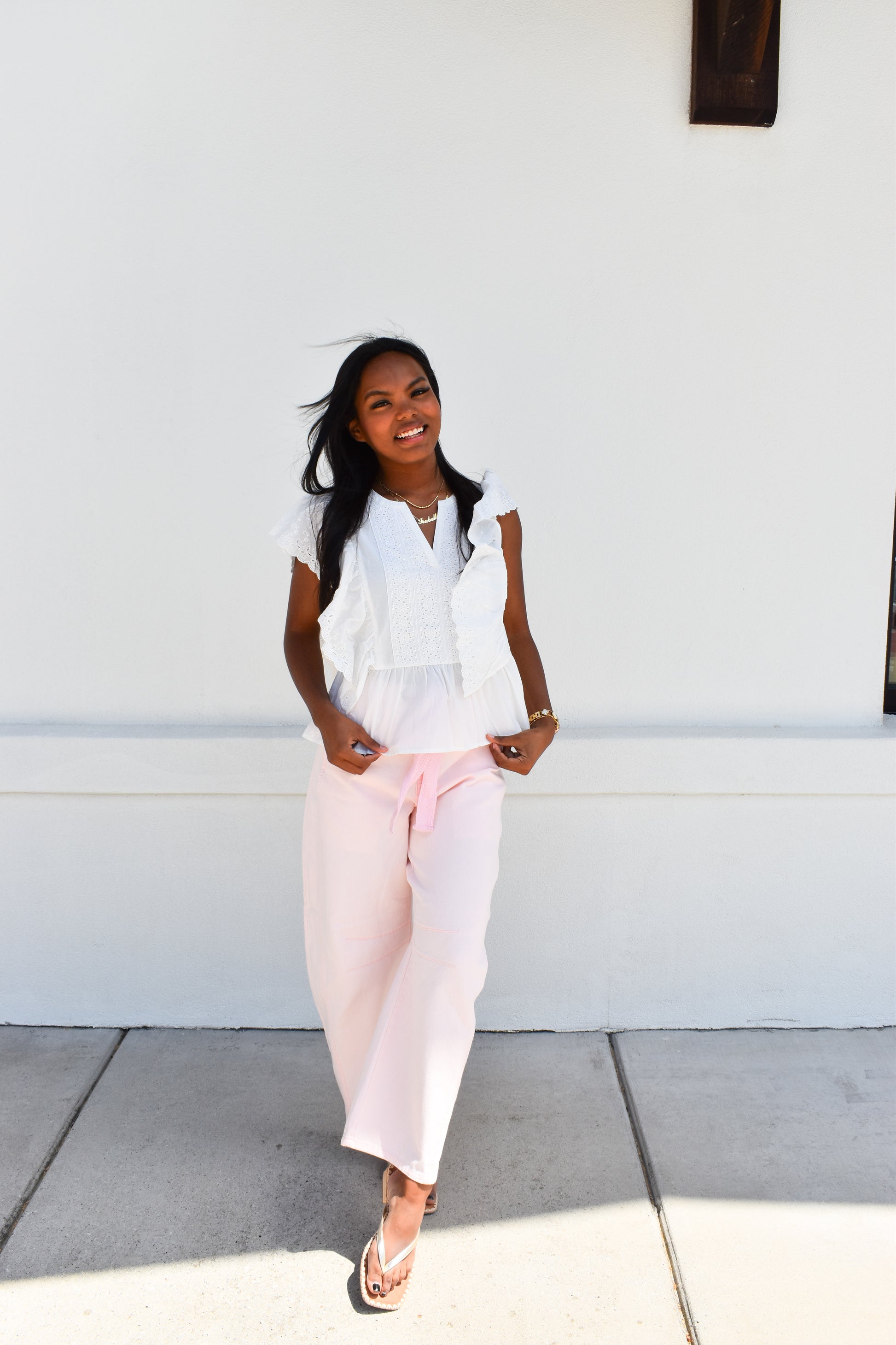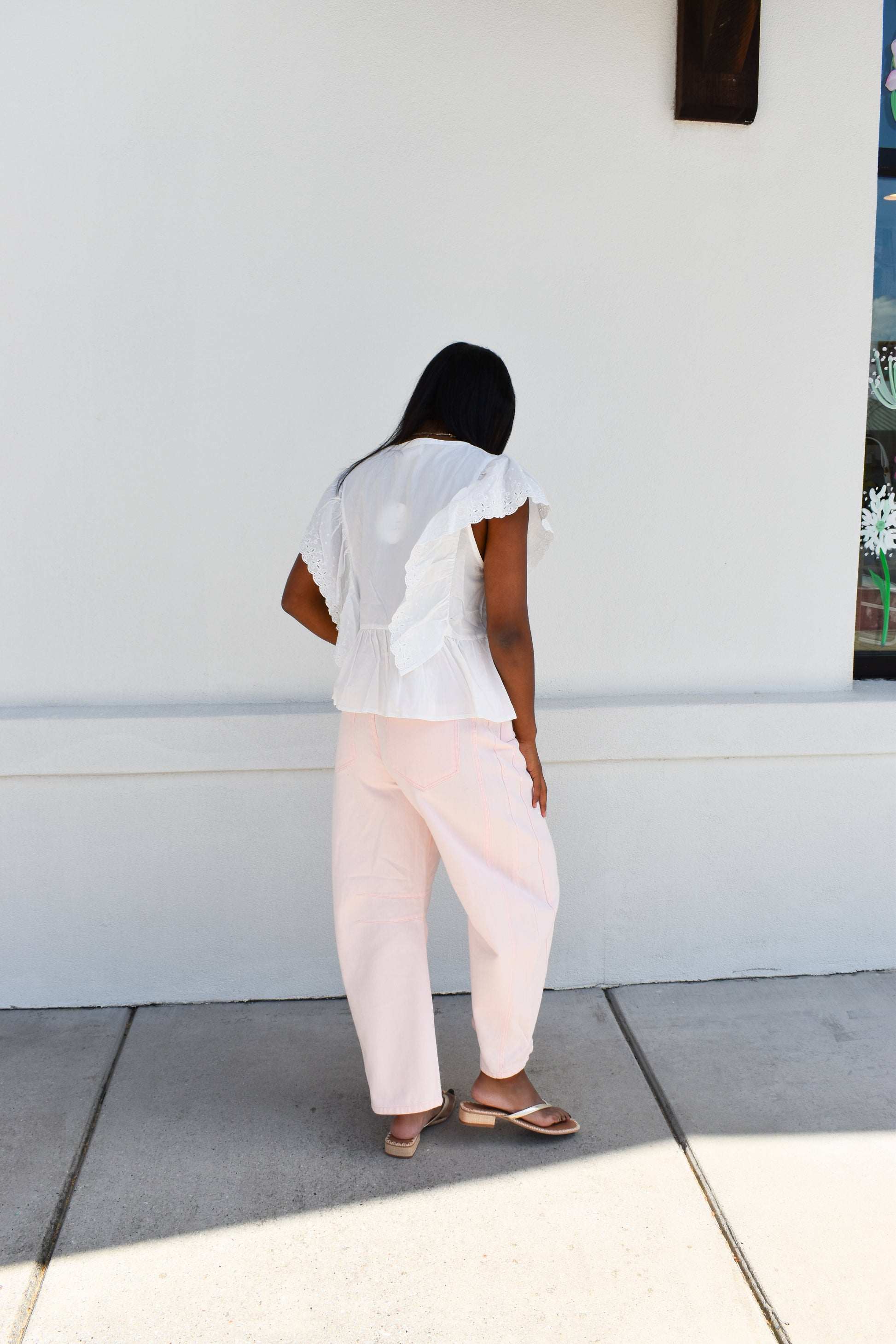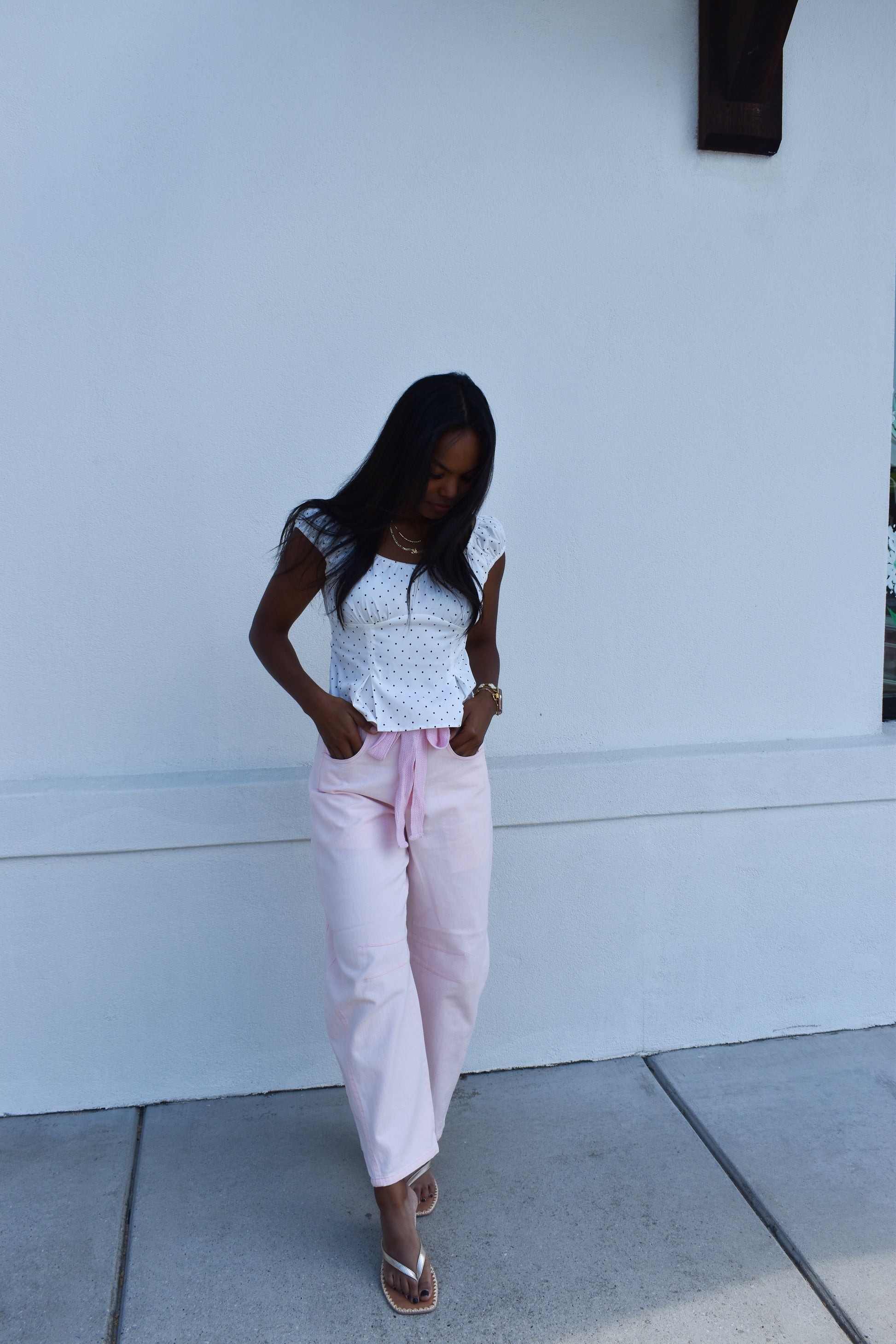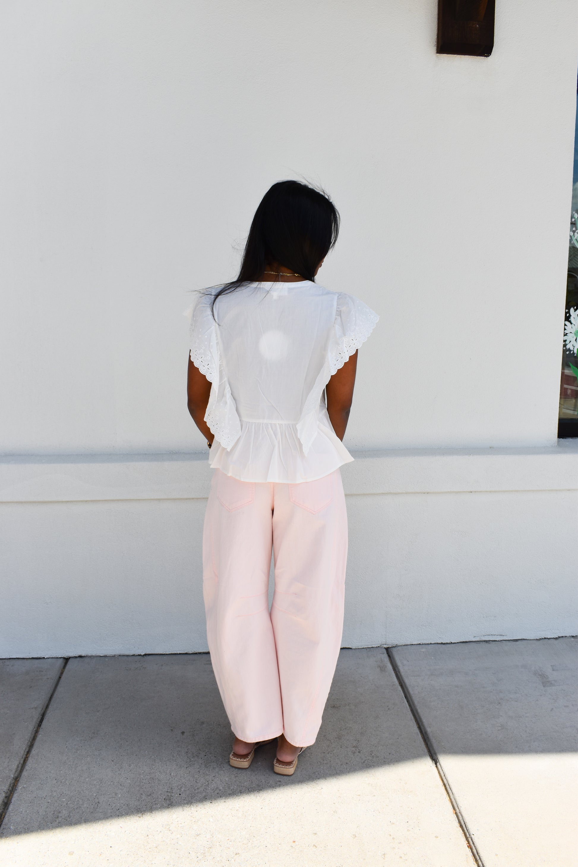 Pink Eyelet Thru Cotton Belt Barrel Jean