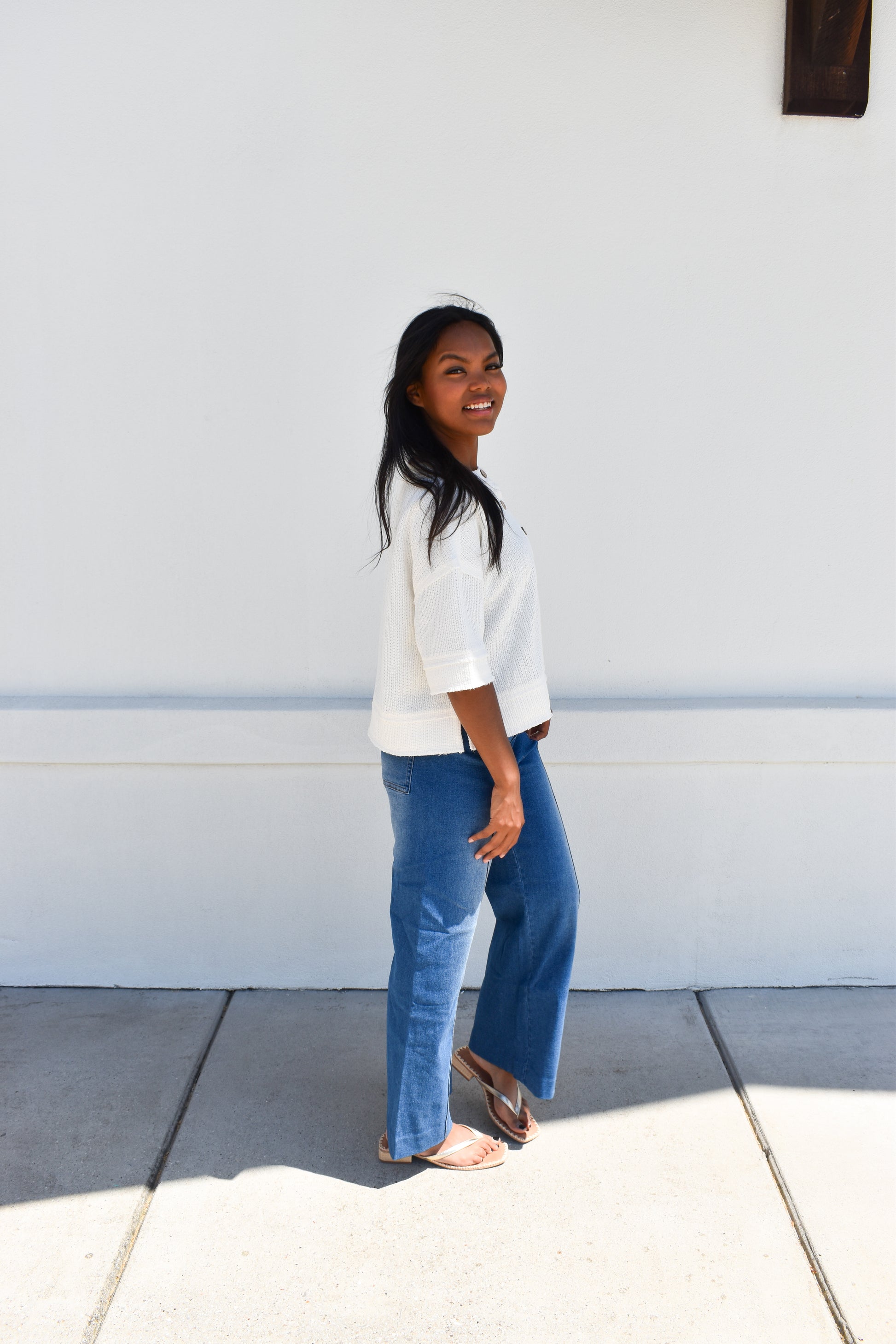 B6ST1010 2 SMALL 2 MEDIUM 2 LARGE HENLEY NECKLINE HALF BUTTON DOWN BOXY FIT RAW EDGE DETAIL KNIT TOP 100%POLYESTER