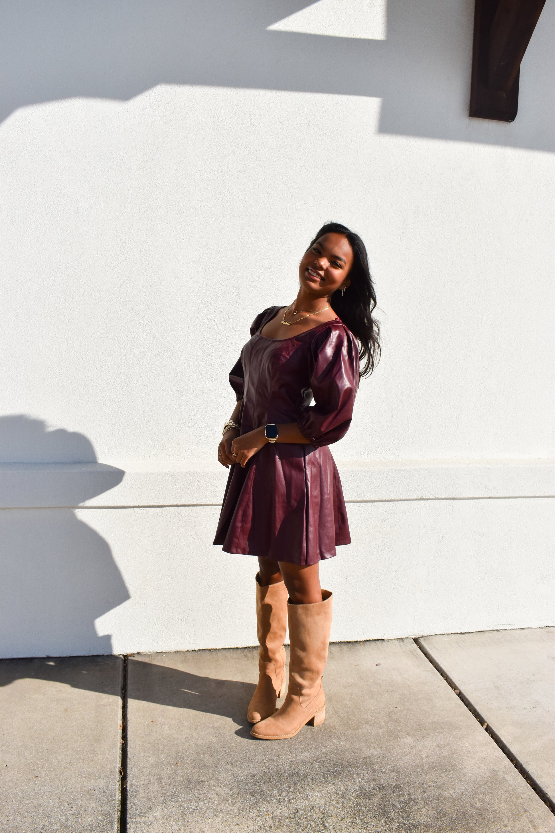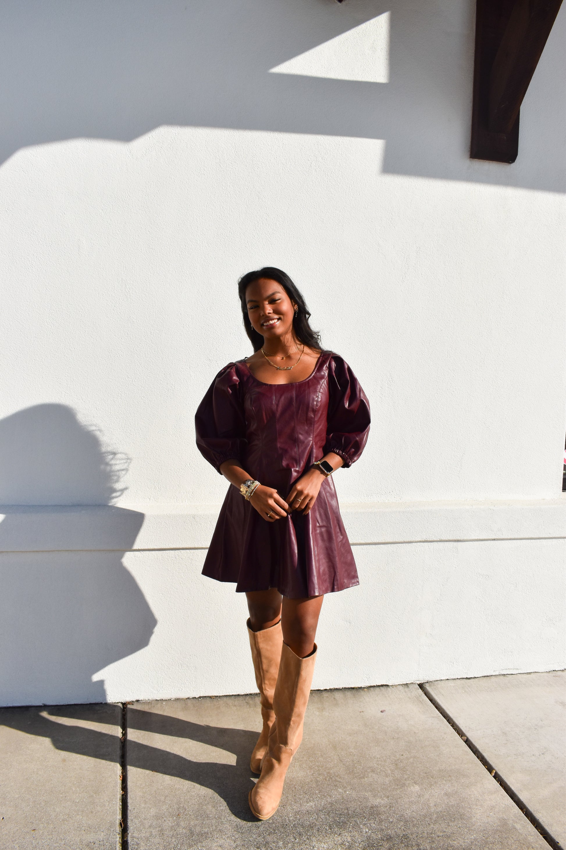 Red Leather Puff Sleeve Dress