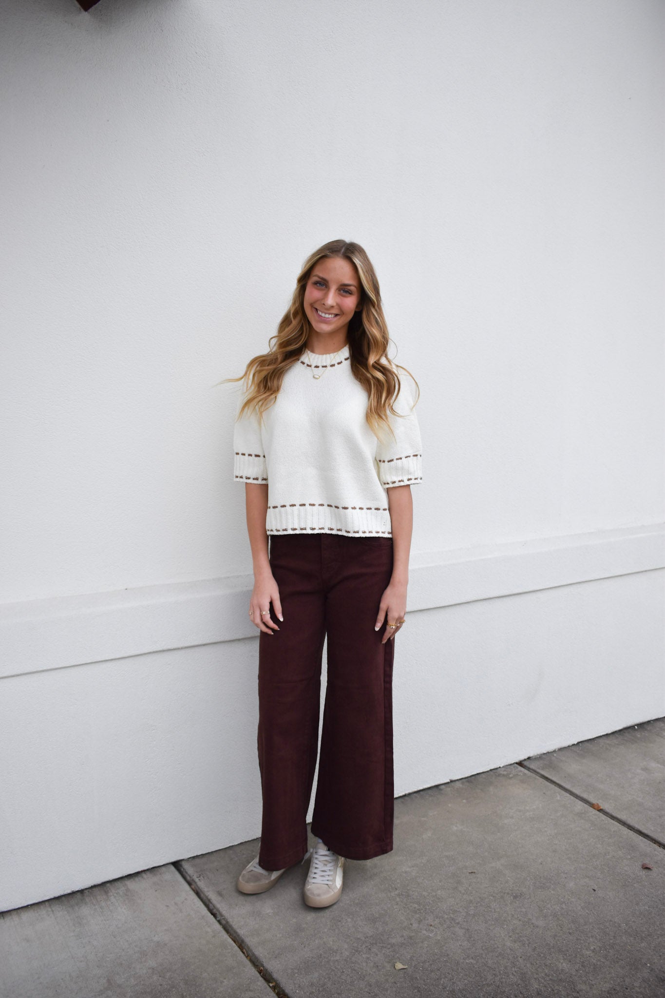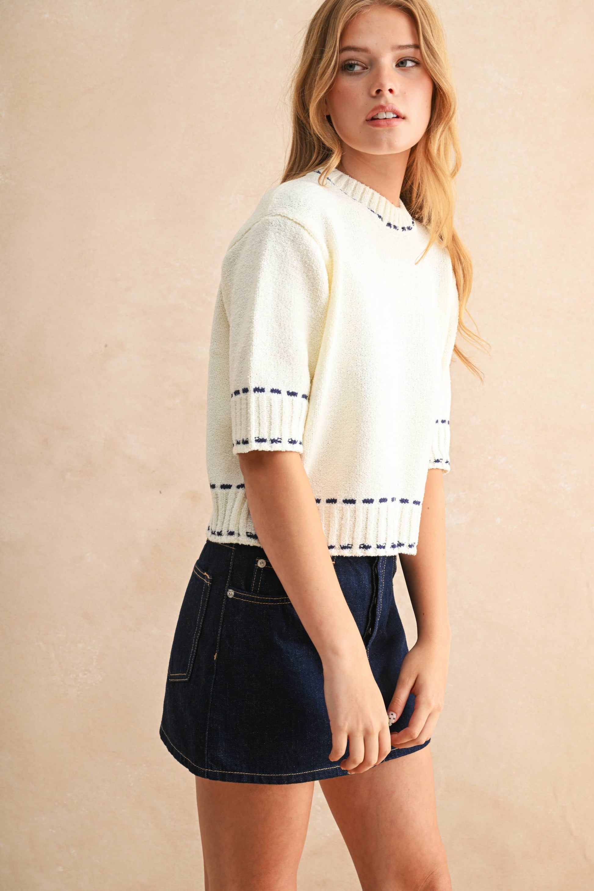 Stitch Effect Short Sleeve Top