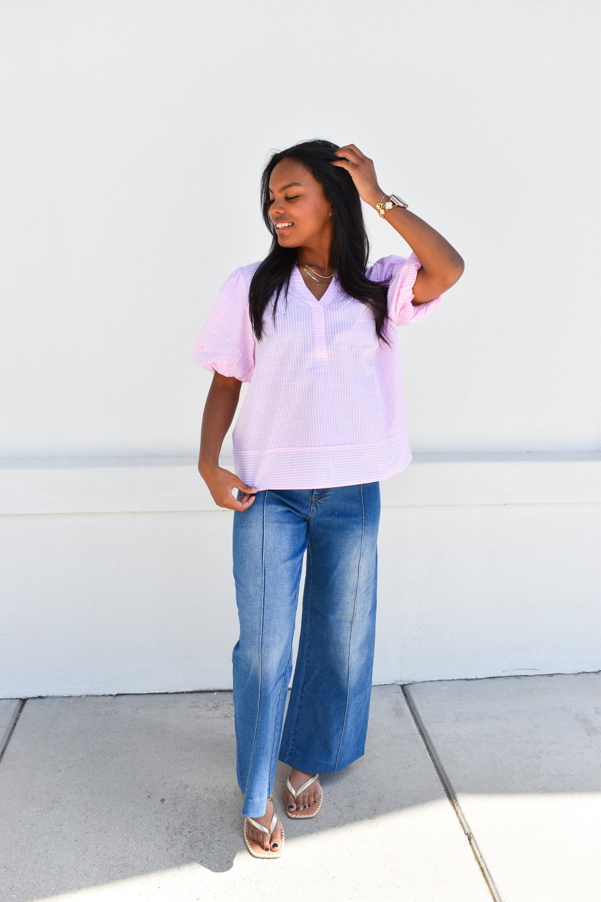 Whisper of Color Airy Cotton Blend Bubble Stripe Blouse